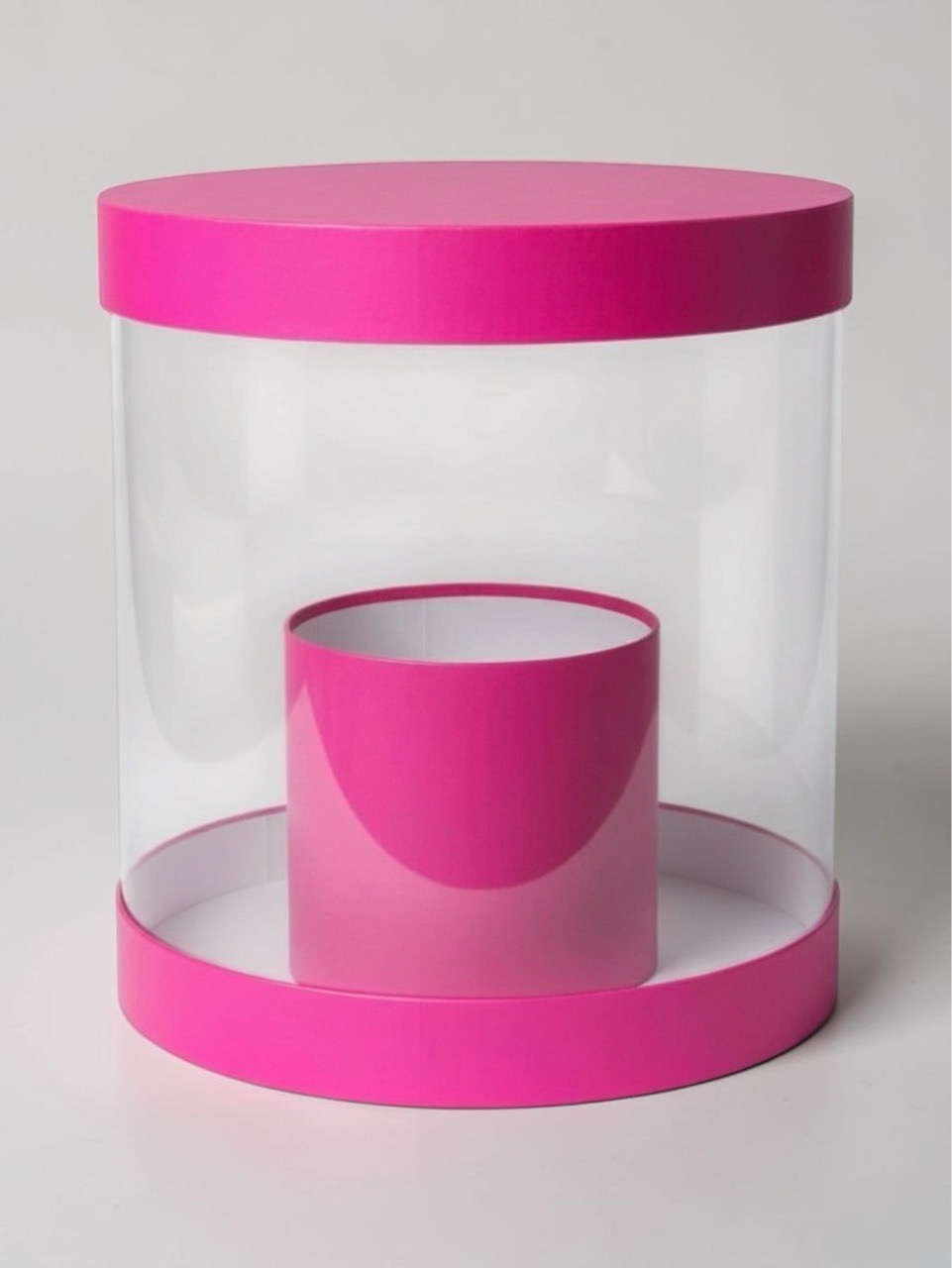 Плотная коробка-аквариум для торта с прозрачными стенками Цвет :Фуксия.